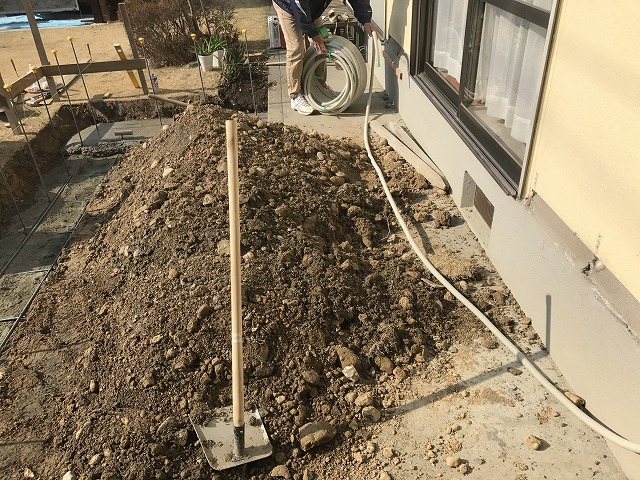 もちろん電気の配線も忘れてはなりませんね。そしてベースコンクリートを打ちます。