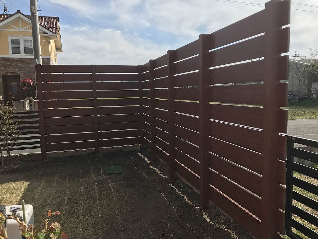 LIXILのデザイナーズパーツ平板15×150を使って目隠しフェンスを施工しました。道路からの視線を遮ることで、お庭にプライベート空間をつくることができました。