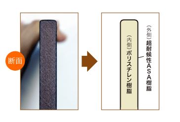 ③表面に超耐候性ASA樹脂を使用しているため、極めて耐退色性に優れています。