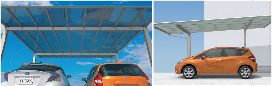 テラス屋根の形状がフラットタイプですので、それに合わせてカーポートの屋根もフラットタイプにしました。