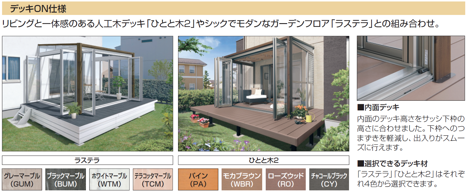 ④三協アルミ:人工木デッキ ひとと木2 & テラス屋根 レボリュー