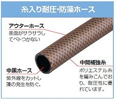この商品のホースは糸入り耐圧・防藻ホースという仕様です。