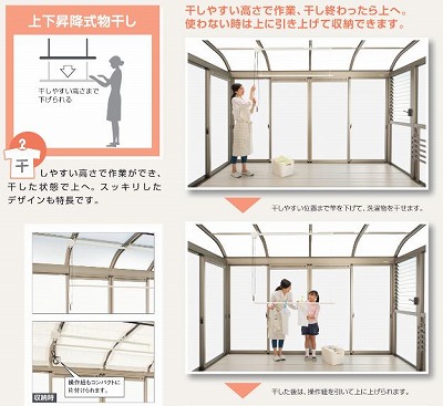 そして晴れもようwithならではの特徴的な便利な竿掛けが「上下昇降式物干し」です