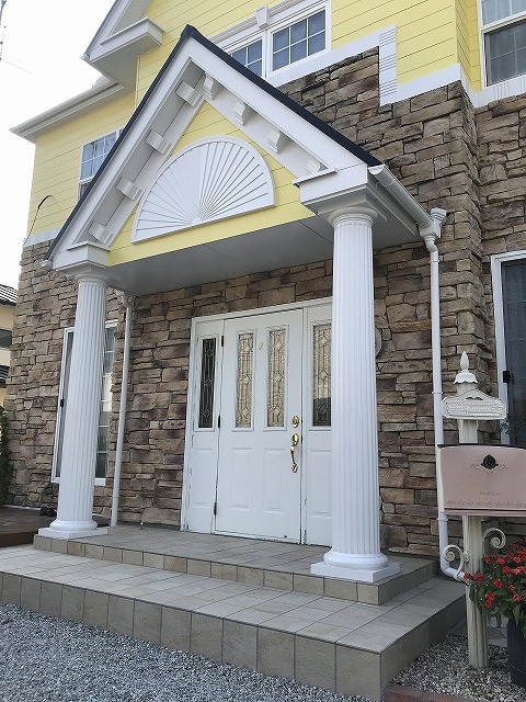 外壁をリフォームするにあたって玄関廻りも明るめにされたいご様子でした。