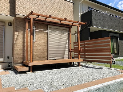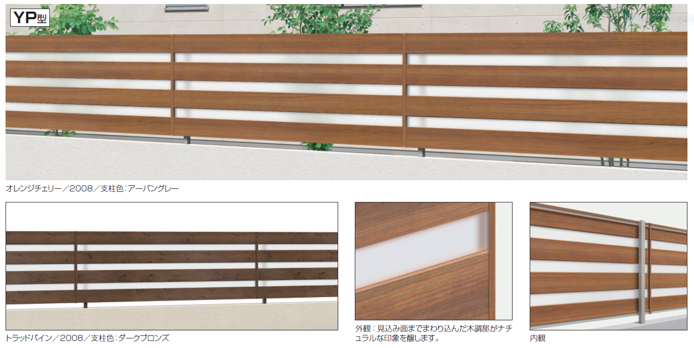 テラス屋根(三協アルミ「ナチュレ」)と同じ木調タイプのフェンスにしました。