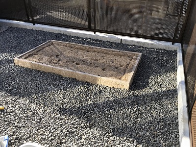 建物前はアプローチとして敷材を施工しましたが、それ以外は全てコンクリート仕上げにしました。