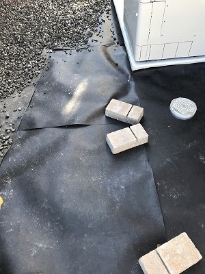 建物廻りは砕石敷きにしましたが、雑草を抑制するために「強力防草シート」を敷きました。