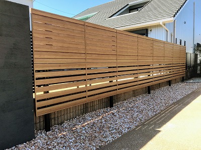 今回はお隣さんとの境に目隠しフェンスを同時に取り付けさせていただきました。