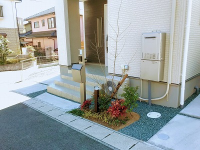 エクステリア用の照明と植栽を植える事でとても賑やかな雰囲気になりました。