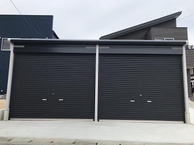 今回施工させて頂きましたガレージは「ヨドガレージ:ラヴィージュⅢ」です。2台用となり、1台における有効開口幅は2m73cmとなります。奥行は6mほどになります。ワンボックスカーもゆったりと入れる広さです。