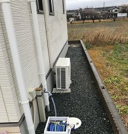 建物廻りも砕石敷きでした。雑草が生えてお手入れが大変だとおっしゃっていました。