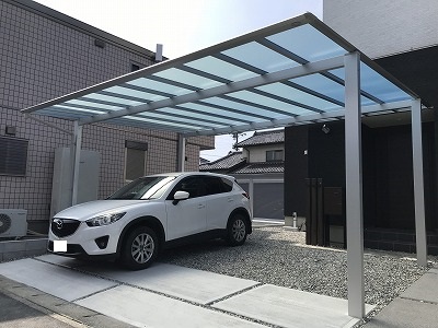屋根材は「熱線遮断ポリカーボネート板」にしましたので、夏場の車内温度を軽減します。