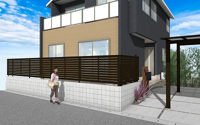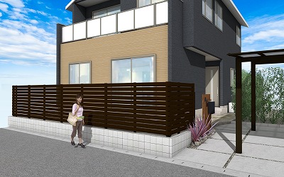 パースはアルミフェンスを使用していますが、木製フェンスも勿論可です。