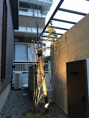 夜間の美観として照明を設置しました。スポットライト型ですので、近隣の方にご迷惑にならない仕様となります。
