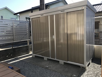 一番奥のワンちゃん用の空間に新しく以前のものより大きめの物置を設置しました。