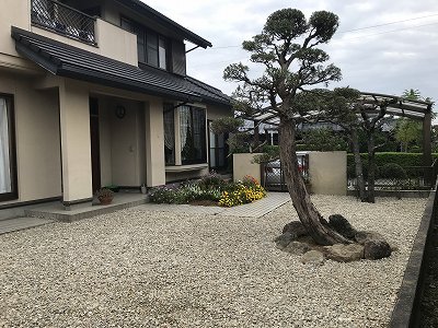松の木や低木・景石等綺麗に配植されていました。こちらも維持されるのが大変なご様子でした。管理を出来る限り掛からないお庭にされたいとの事でした。
