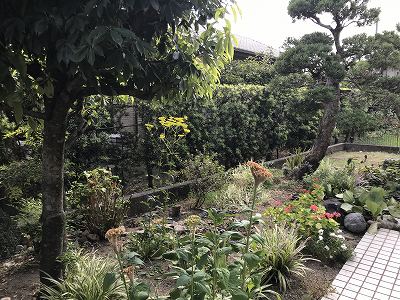 こちらの写真は現地調査時に撮影しました。門廻り部分で低木等綺麗に配植されていました。低木廻りの雑草は定期的に整理されていたそうです。