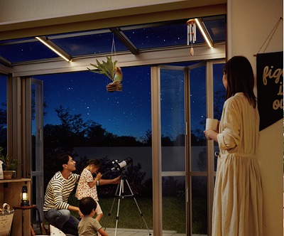 照明を灯したガーデンルームで星を眺めながらいつもと違った夕食を楽しんだり、家族で天体観測を楽しむのも良いかもしれませんね。