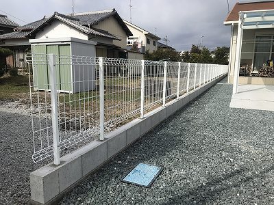 境界部分はコンクリートブロックを積んでからメッシュフェンスを設置しました。
