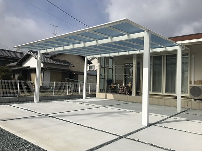 カーポートは2台用を設置。本体色は「ホワイト」をお選びになられました。空間が明るくなって素敵でした。