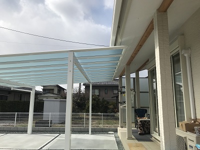 屋根材は「熱線遮断ポリカーボネート」を使用して、夏場の車内温度の上昇を抑えるようにしました。