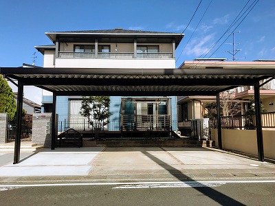より強度の高いスチール折半屋根カーポート(3台用)を設置しております。