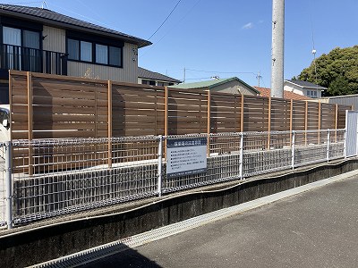 目隠しとして木質表現がおしゃれなフェンスを設置しました。LIXIL フェンスAA 袋井市