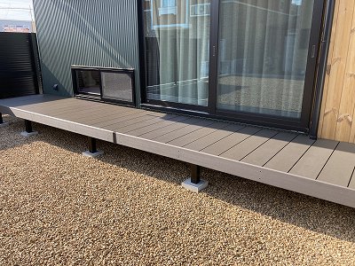 ダークグリーンの外壁に合う「チャコールブラック」のデッキ