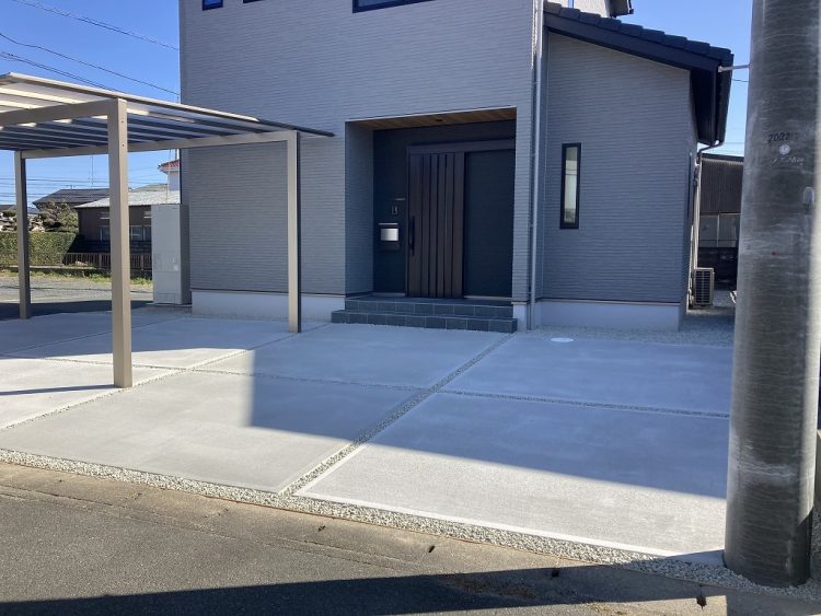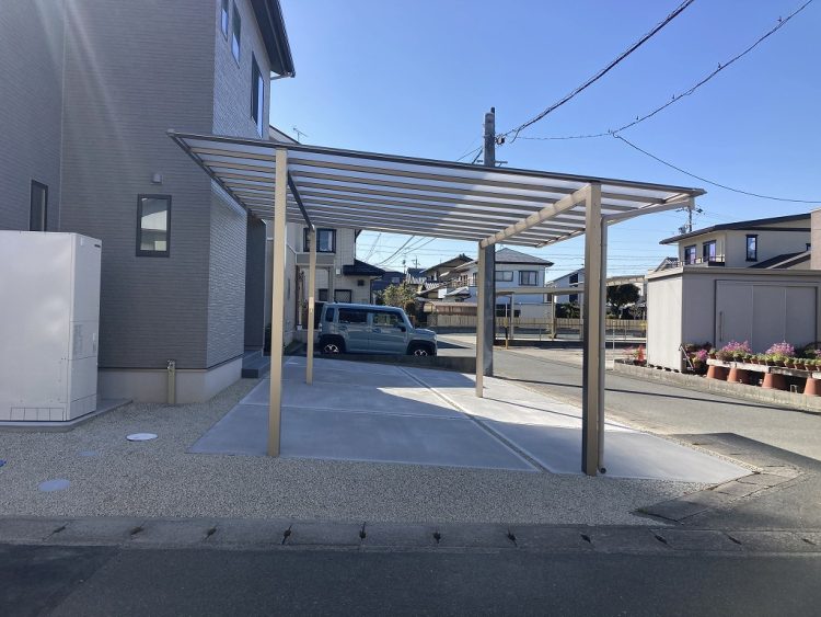 4台用の駐車場とスタイリッシュなデザインのカーポート 浜松市中央区O様邸