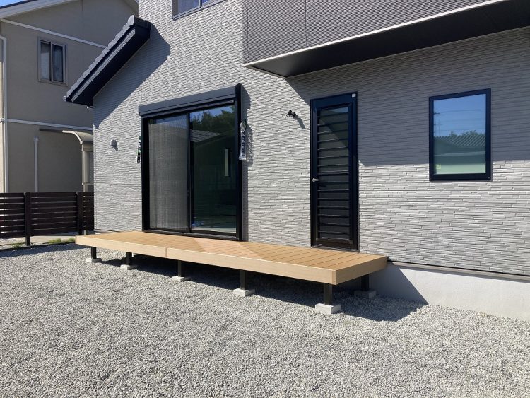 こちらはLIXIL製の人工木ウッドデッキ「樹ら楽ステージ」。